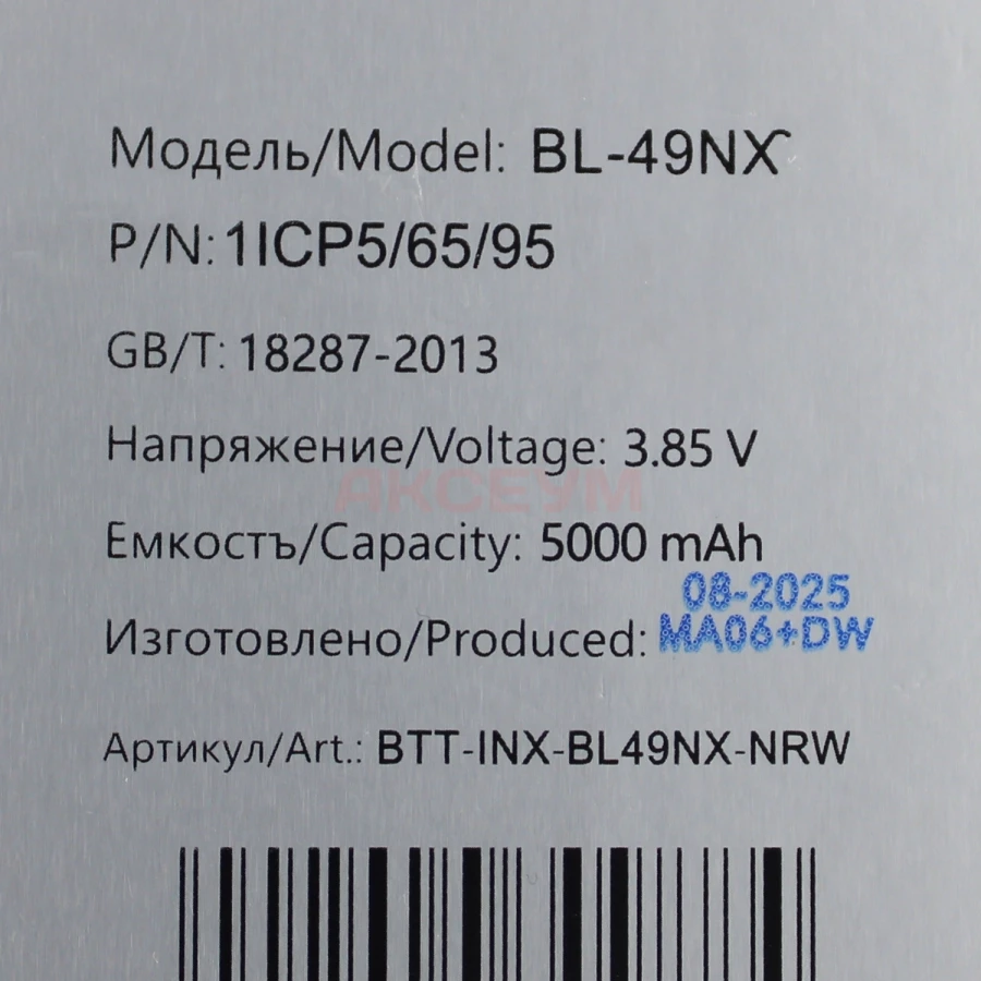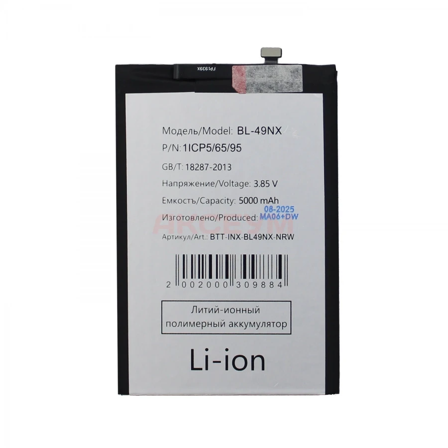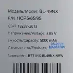 Литий-ионный аккумулятор BL-49NX имеет заявленную емкость в 5000 mAh и полностью совместим со смартфоном Infinix Smart 9 (X6532). Разницы, помимо изготовителя, практически нет. Единственное важное отличие - его эксплуатационные характеристики немного отличаются от батарейки, изготовленной на заводе-производителе самого смартфона. Прежде всего это сниженная (порядка 10-12% от заявленной) емкость и меньший срок эксплуатации. Если батарейка с завода прослужит Вам не менее двух лет и выдержит около 600-800 циклов заряда/разряда, то от этой стоит ожидать уверенной работы в течение года или 400-500 полных циклов до того, как максимальная емкость упадет до 75%. Если Вы не хотите переплачивать за бренд или желаете сэкономить, при этом получив приемлемую по качеству запчасть, то эта батарейка - Ваш вариант..